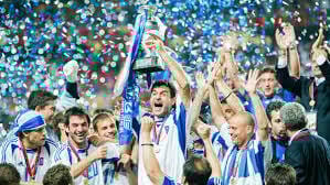 Greece lift the Euro 2004 Trophy - Photo Credit Alain Gadoffre/Onze/Icon Sport/Getty Images